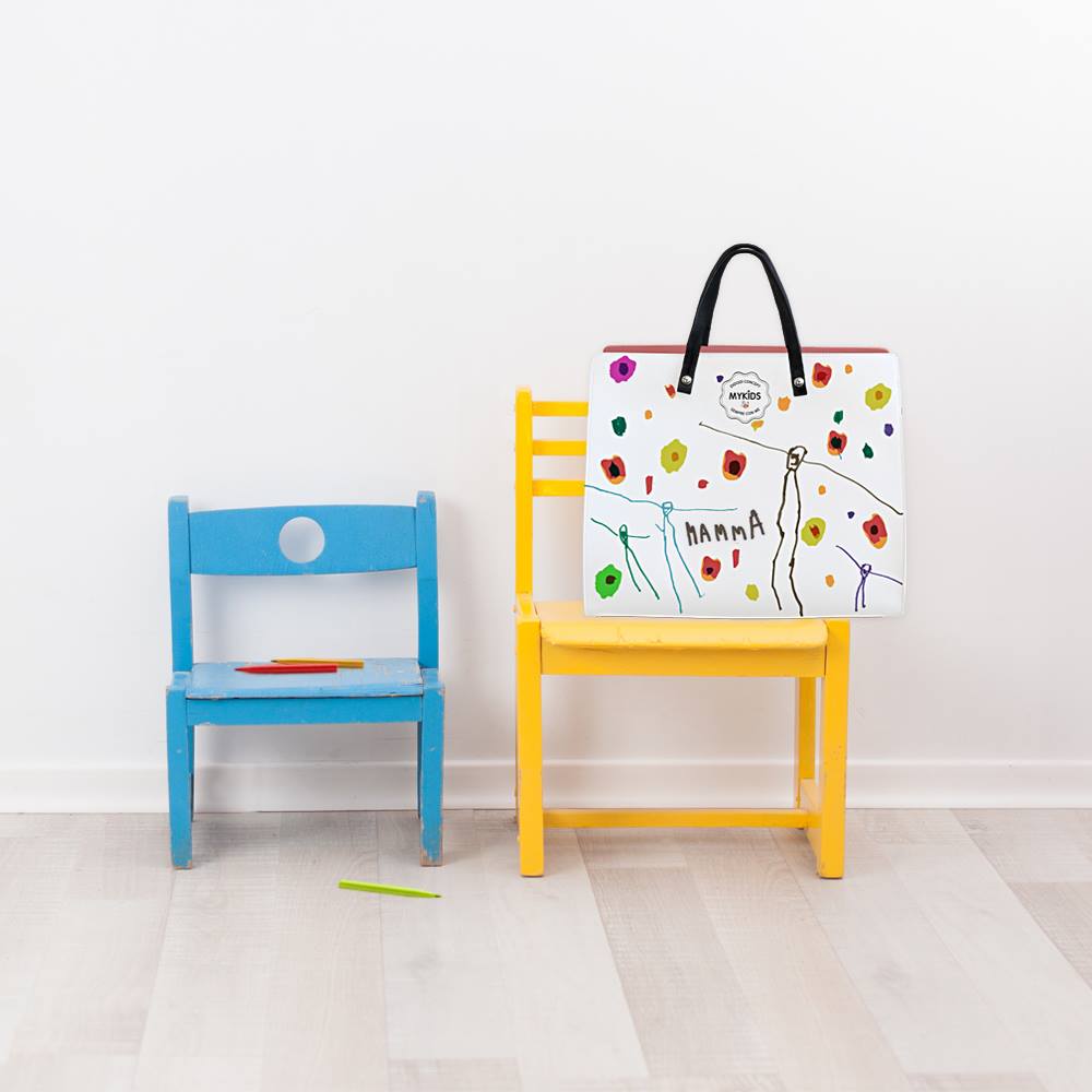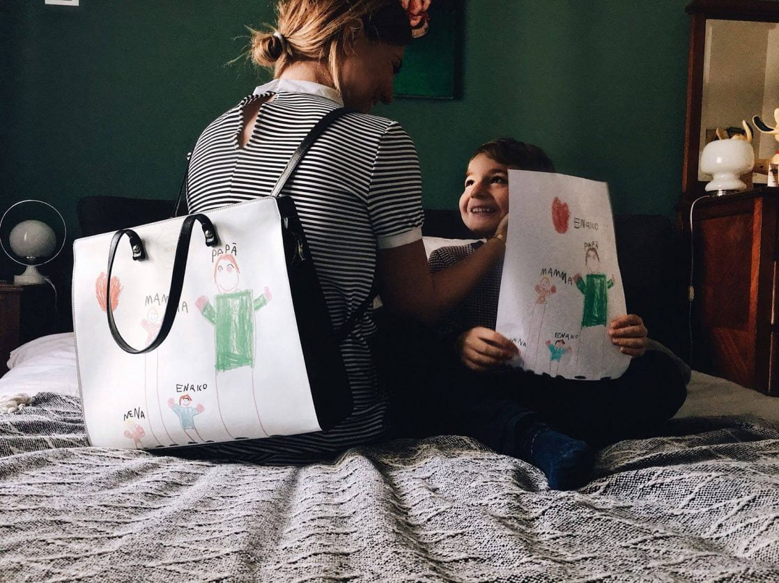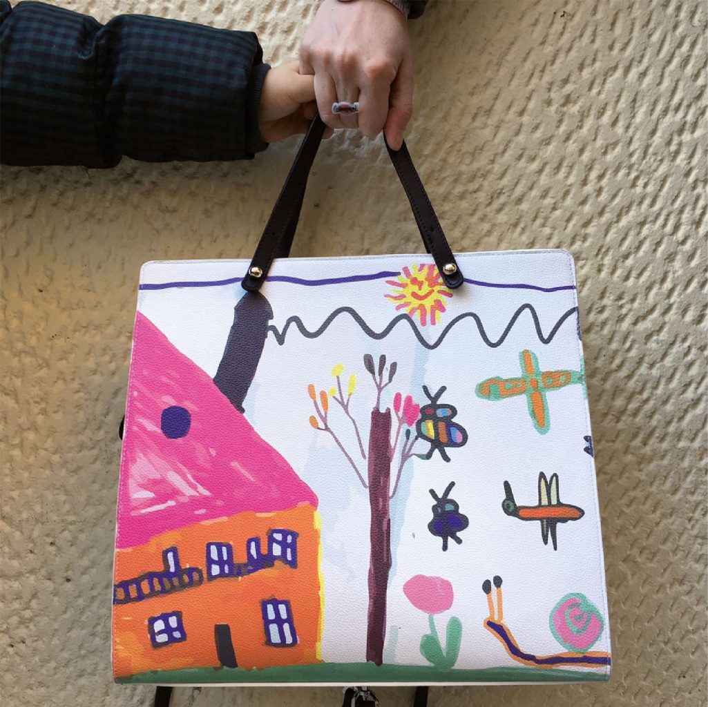 La borsa che racconta attraverso i disegni dei bambini il loro mondo e l’amore ch eli lega alle loro famiglie.