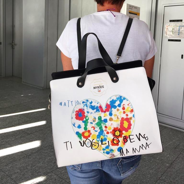 Da questa storia, unita alla mia professione di designer e, soprattutto negli ultimi anni, di bags designer che nasce MYKIDS bag .