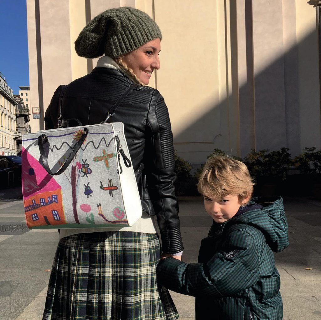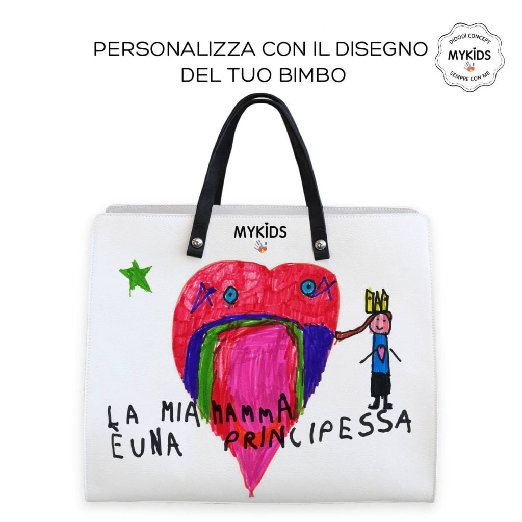 Si, mi diverte. Forse perchè sono cresciuta nel primo laboratorio d’arte e creatività creato in Italia da Carmela, mia mamma, docente d’arte ed experience designer. Quella esperienza vissuta da piccola mi ha formato, mi ha fatto capire quanto sia importante alimentare la creatività dei bambini. Quanto sia formativo per il loro futuro, anche se non faranno gli artisti né i pittori. E’ il potere dell’immaginazione che ti aiuta a vedere oltre. Per questo ho deciso di creare i “MYKIDS Experience LAB” in collaborazione con la mia mamma che cura la prima parte del lab, in cui i bambini vengono accompagnati in una visualizzazione guidata del loro “momento Felice” che poi disegnaranno su fogli che si trasformeranno  in cartamodello in dimensione reale della mykids bag. Dall’idea alla realizzazione.